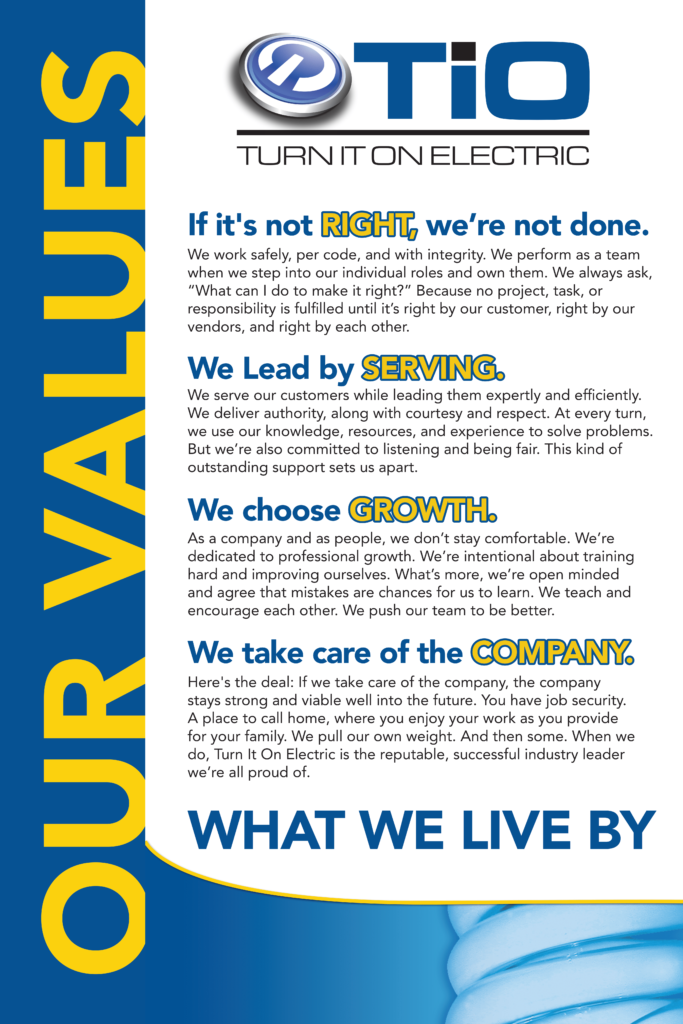 We work safely, per code, and with integrity. We perform as a team when we step into our individual roles and own them. We always ask, “What can I do to make it right?” Because no project, task, or responsibility is fulfilled until it’s right by our customer, right by our vendors, and right by each other.